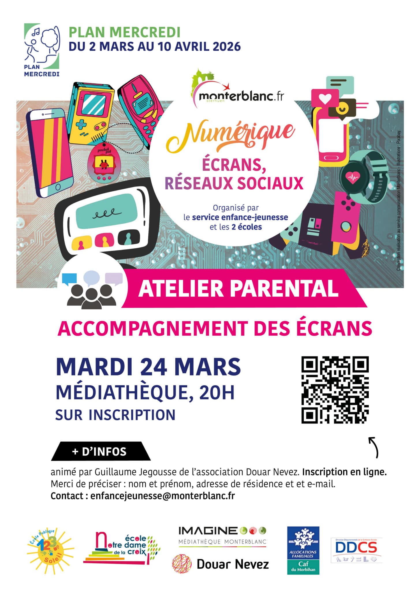 Le numérique, les écrans et les réseaux sociaux : c’est le thème 2026 retenu pour le plan mercredi, un programme d’animations pédagogiques préparé par le service enfance-jeunesse et les deux écoles à destination des enfants et des habitants, avec entre autres :