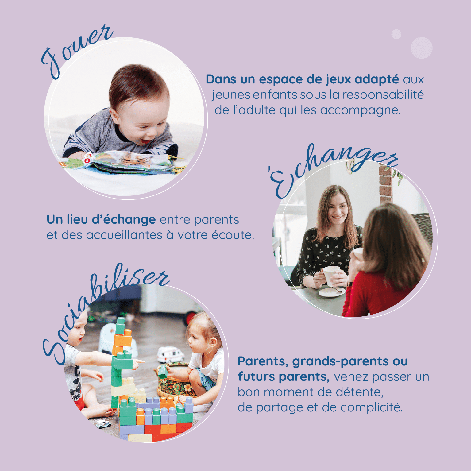 - Les parents peuvent y aborder ensemble ou avec les accueillantes tous les sujets du quotidien et de la famille.