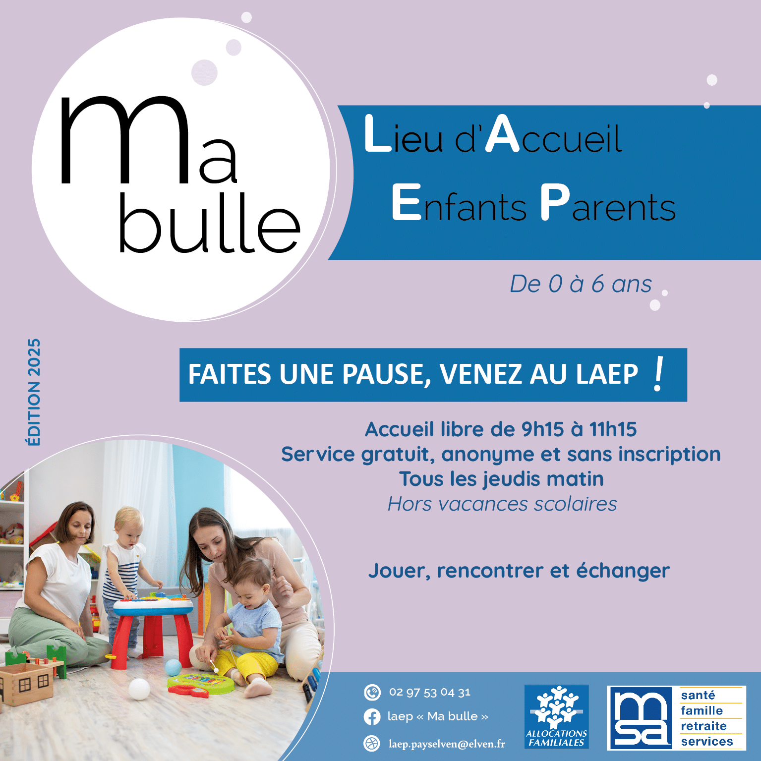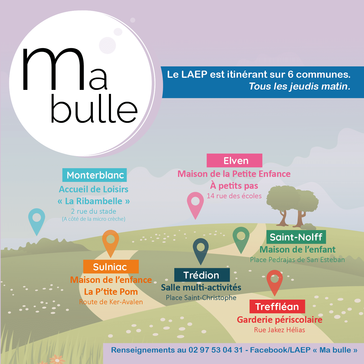 Le LAEP est itinérant et se déplace sur les 6 communes du pays d’Elven : Elven, Saint Nolff, Trédion, Tréffléan, Monterblanc et Sulniac.