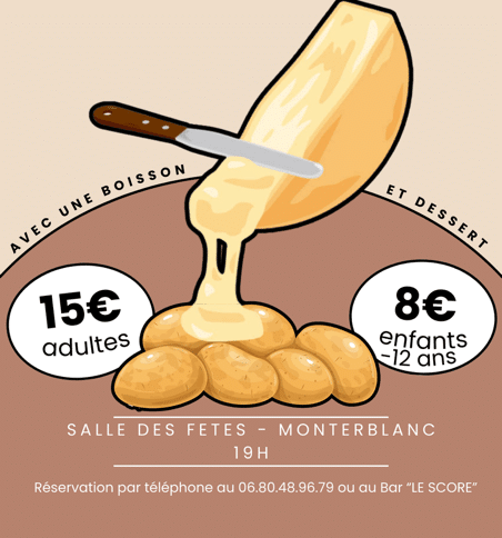 L’ASM foot de Monterblanc vous invite à une soirée raclette à gogo, samedi 24 janvier, à partir de 19h.