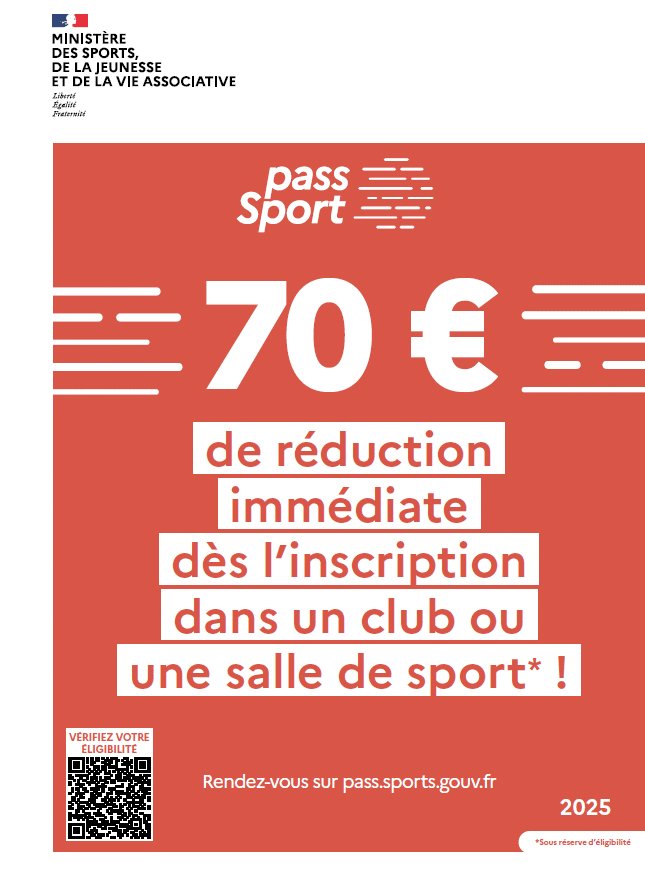 Le pass Sport est une aide financière de 70 €, destinée à faciliter l’accès à la pratique sportive pour les jeunes, en particulier ceux rencontrant des freins économiques ou sociaux.